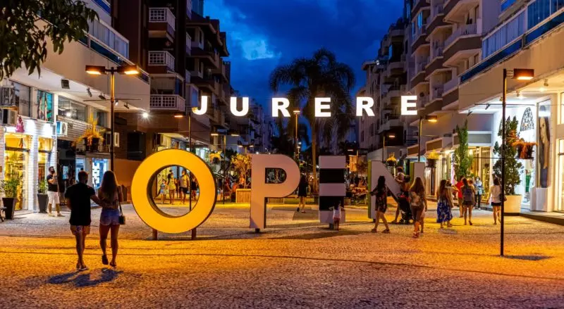 Como um calçadão em que é proibido veículos o centro do bairro abriga um dos lugares mais icônicos, Jurerê Open Shopping, uma praça comercial que agrupa diversos estabelecimentos que variam desde lazer, gastronomia e boutiques.